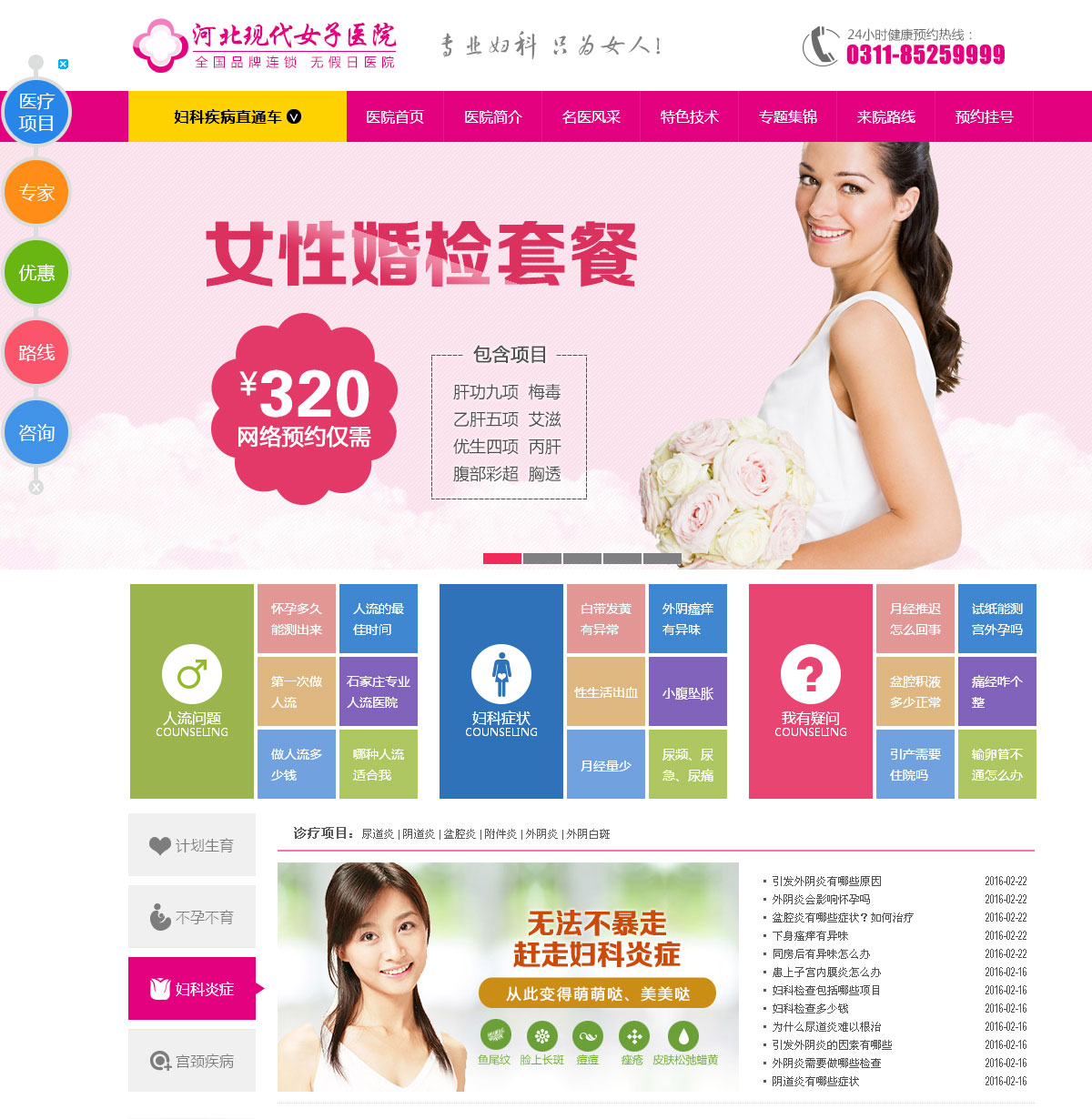 河北现代女子医院是“现代女子”全国品牌连锁机构,集医疗、教研、预防、保健、咨询为一体。医院以宫腔镜、腹腔镜、介入治疗等微创技术为核心,开展各种无痛化诊疗服务,最大限度减轻患者的创伤与痛苦,保留患者生理功能的完整性。专业打造妇科炎症、不孕不育、计划生育(she’s国际人流)、乳腺疾病、子宫肌瘤、外阴白斑、内分泌、整形美容、健康体检等九大诊疗中心的全新的医疗服务模式。