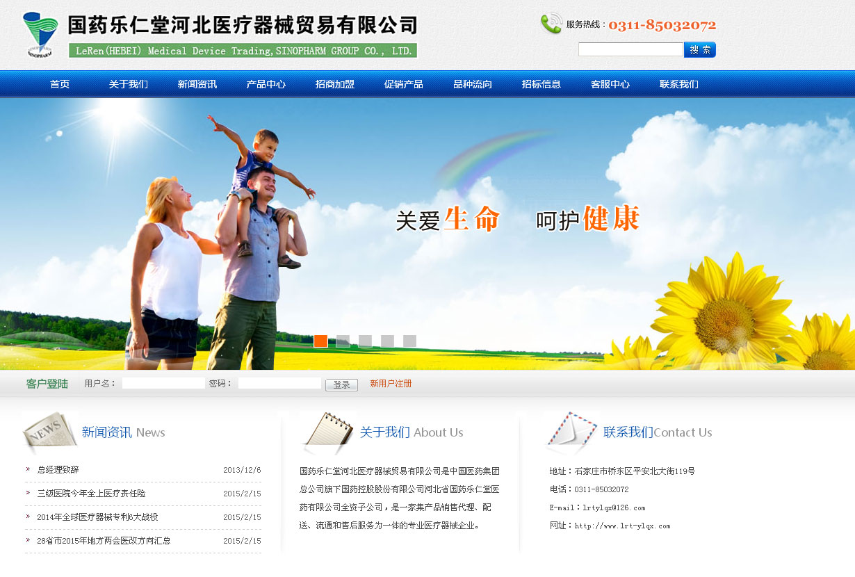 国药乐仁堂河北医疗器械贸易有限公司是中国医药集团总公司旗下国药控股股份有限公司河北省国药乐仁堂医药有限公司全资子公司,是一家集产品销售代理、配送、流通和售后服务为一体的专业医疗器械企业。