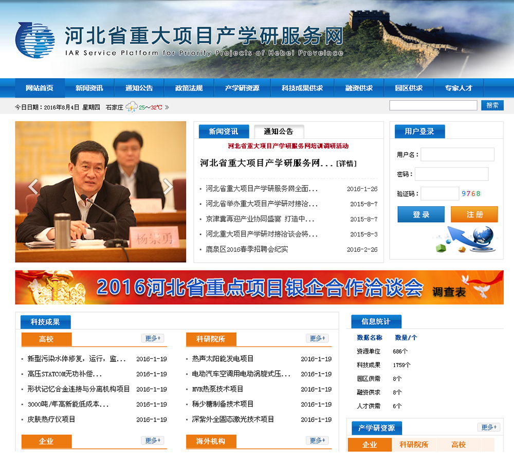 河北省重大项目产学研服务网首页效果图