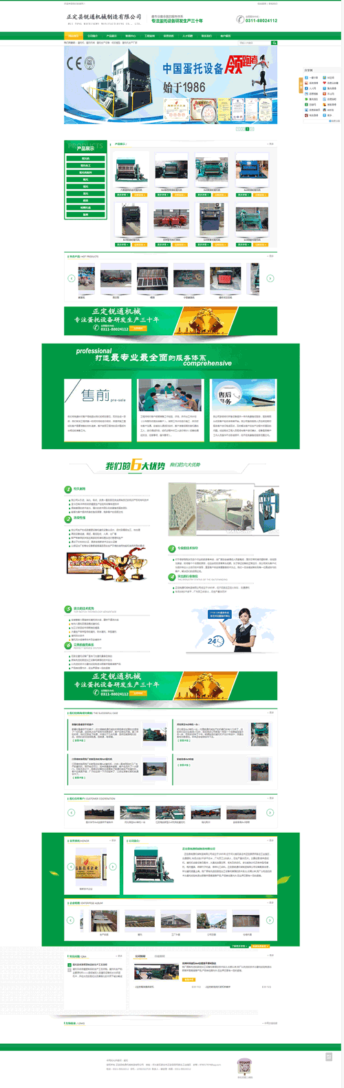 正定县锐通机械制造有限公司成立于1985年,位于河北省石家庄市正定县西邢家庄,交通便利, 车间占地3千多平方米,厂内员工40多人,日生产量30万片。主要经营:各种造纸机、蛋托机成套设备及配件,大量批发真空泵、毛布及碎浆机、多功能除沙机及各种型号蛋托、瓶托模具、晾晒竹子托盘、各种化工染料大全。正定县锐通机械制造有限公司是专门为蛋托量身定做的,分为大型旋转成型设备、小型翻转设备和小型往复自动设备三种。设备配套合理,所出蛋托质量上乘。我厂拥有先进的数控加工设备和雄厚的技术实力,长期以来,我厂以先进的技术力量和经验制造出顾客所需最满意产品,产品销往国内外,在业界已享有一定的盛誉。