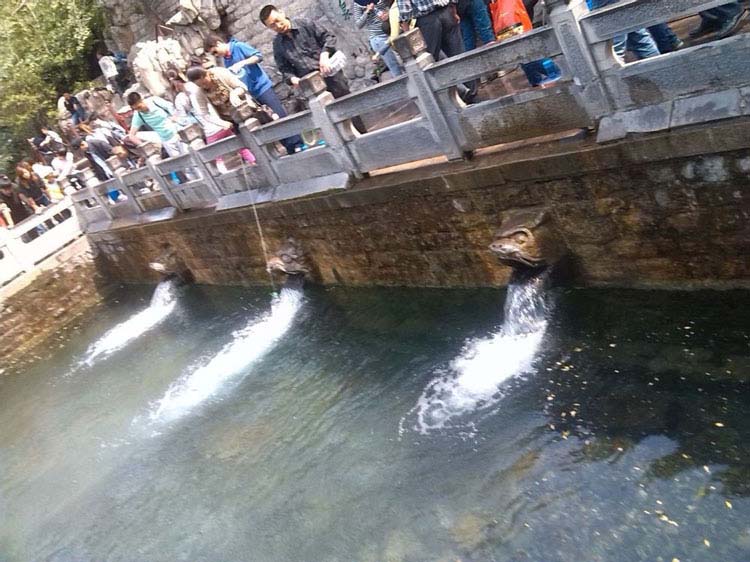 然后我们来到了黑虎泉,黑虎泉自“崖下水出,汇为一池,汩汩有声,流入城壕,其清可鉴眉须。”明代晏壁的《济南七十二泉》诗, 写出了黑虎泉的气势。