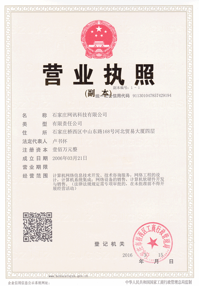石家庄网讯科技有限公司营业执照